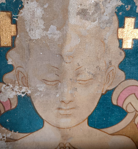 le traitement des infestations fongiques et endomiques, les consolidations d'urgence de la couche picturale, les consolidation de son support en toile, bois ou autre, les reprises de déchirures, de la tension ou d'une ancienne consolidation du support, le changement de mode de conservation avec la mise sur rouleau si nécéssaire, la pose de dos protecteur etc...
